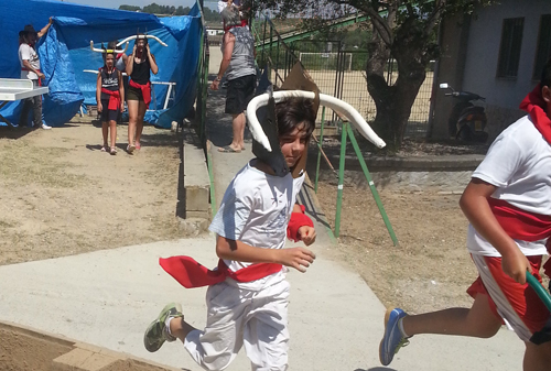 L’endemà, diumenge dia 7, es van recrear els tradicionals ‘encierros’, en què van participar-hi aquests dos toros de cartró, acompanyats de tots els nens i nenes que van disfressar-se amb els caps de toro elaborats en el taller. Després, i per recuperar forces, es van servir panses i aiguardent als adults, i es va fer una xocolatada per als més petits. Dos ‘chupinazos’ van donar el tret de sortida tant el ‘toro embolado’ com als ‘encierros’.