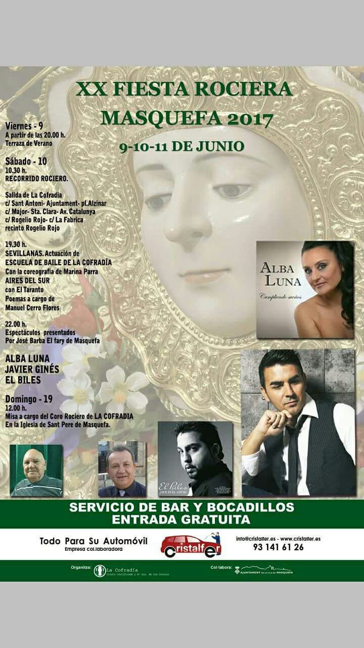 Masquefa ja es prepara per acollir aquesta setmana una de les celebracions més especials del període pre-estiuenc masquefí. Des del divendres dia 9 fins al diumenge 11 de juny, la vila serà la seu de la 20a edició de la Fiesta Rociera de Masquefa, organitzada per la Cofradía del Cristo Crucificado y Nuestra Señora de los Dolores i amb la col·laboració de l’Ajuntament.