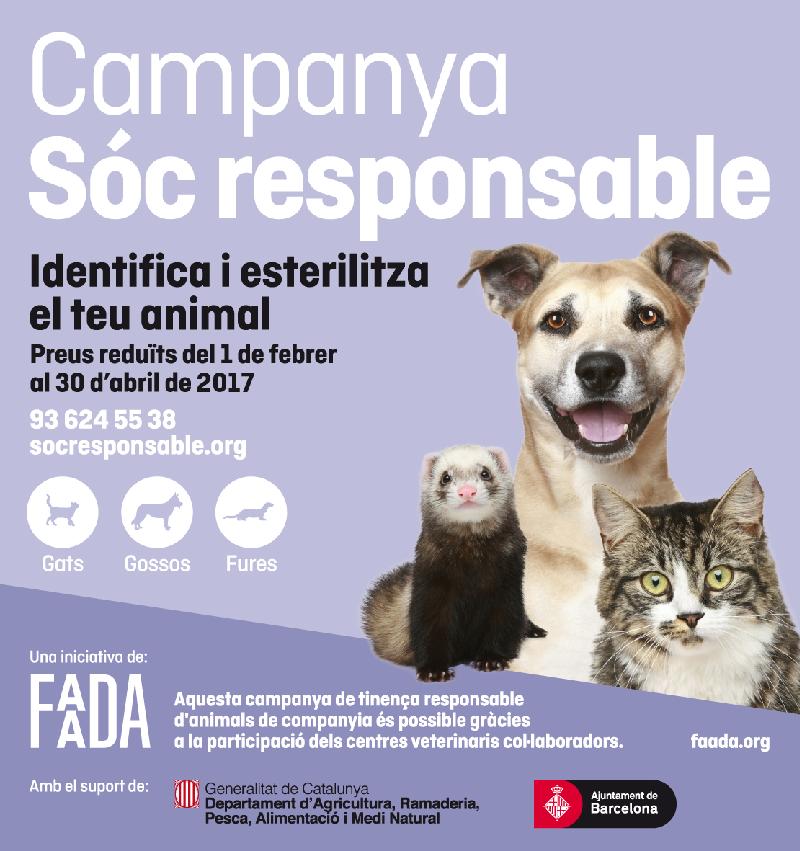 Per la seva banda, els propietaris dels animals s’hauran d’inscriure a www.socresponsable.org abans del 30 d’abril. Les actuacions veterinàries s’aniran programant i es podran realitzar fora de les dates de campanya, si la llista d’espera així ho requereix. Cal remarcar, a més, que les esterilitzacions es faran només en el cas que l’animal estigui identificat amb microxip. És un requisit indispensable per poder acollir-se als preus promocionals. Per a qualsevol dubte, podeu contactar amb FAADA a través del web www.socresponsable.org, el correu electrònic socresponsable@faada.org o bé al telèfon 679 628 743.