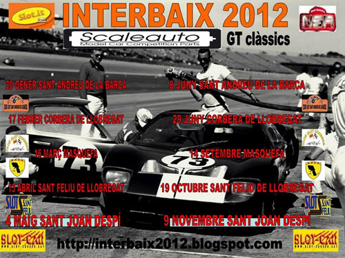 Aquest divendres, 16 de març, el circuit de slot de Masquefa serà la seu de la tercera prova puntuable del Campionat comarcal de velocitat del Baix Llobregat, l’Interbaix. En la prova, que es disputarà amb Gran Turismes de l’època dels anys 60, hi participaran els millors especialistes comarcals, provinents de Sant Joan Despí, Corbera de Llobregat, Sant Feliu de Llobregat, Sant Boi de Llobregat, Pallejà, Gelida, Martorell, així com els pilots locals de Masquefa.