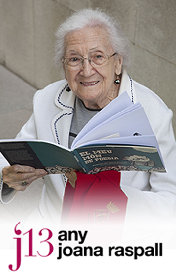 El material que inclou l’exposició brinda l’ocasió de conèixer de més a prop l’autora i admirar la naturalitat i riquesa verbal dels seus poemes. Nascuda l’1 de juliol de 1913 a Barcelona, encara que als tres anys ja es va traslladar amb la seva família a Sant Feliu de Llobregat, on encara viu en l’actualitat, Joana Raspall i Juanola és una de les primeres autores que escriu poesies per a infants en català.