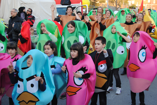 Tampoc no s’ho van perdre uns quixots vestits amb lluentes armadures, els ocellets dels Angry Birds, que per un dia es van escapar de les pantalles dels mòbils, els personatges d’un saló de l’oest, i una colla d’atletes, encara no se sap ben bé de quina disciplina esportiva, acabats d’aterrar de les olimpíades russes amb una gran bandera gay que poc deuria agradar a Putin. Al Carnaval tampoc no hi van faltar les crítiques al ministre Wert i la seva llei d’educació, amb les pancartes que alçava un nodrit grup d’escolars molt enfadats.