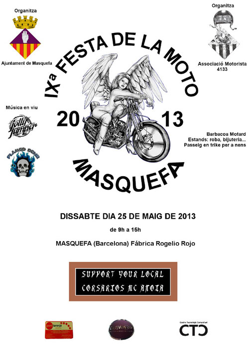 Aquest dissabte, 25 de maig, Masquefa tornarà a convertir-se en la capital dels ‘motards’. El Recinte Rogelio Rojo acollirà una nova edició, la novena, de la Festa de la Moto, organitzada per l’Associació Motorista 4133 amb la col·laboració de l’Ajuntament.