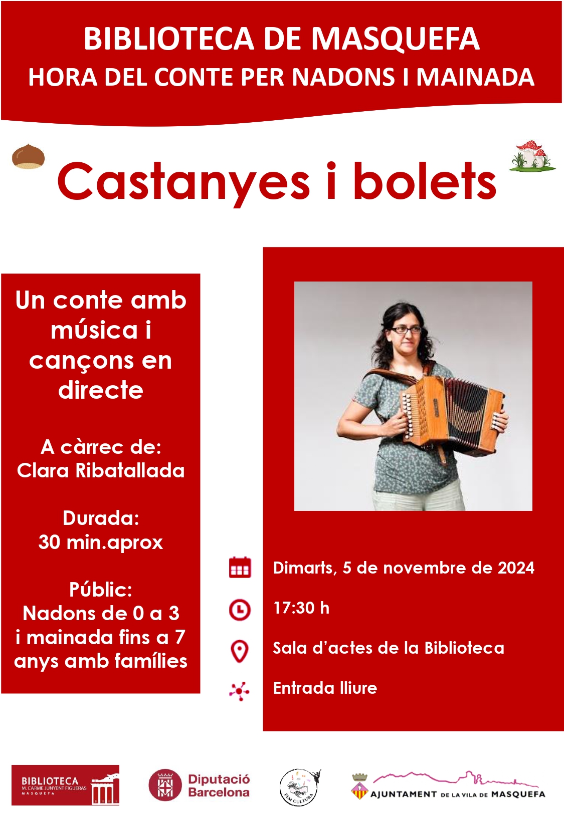“Castanyes i bolets” Un conte amb música i cançons amb directe.
