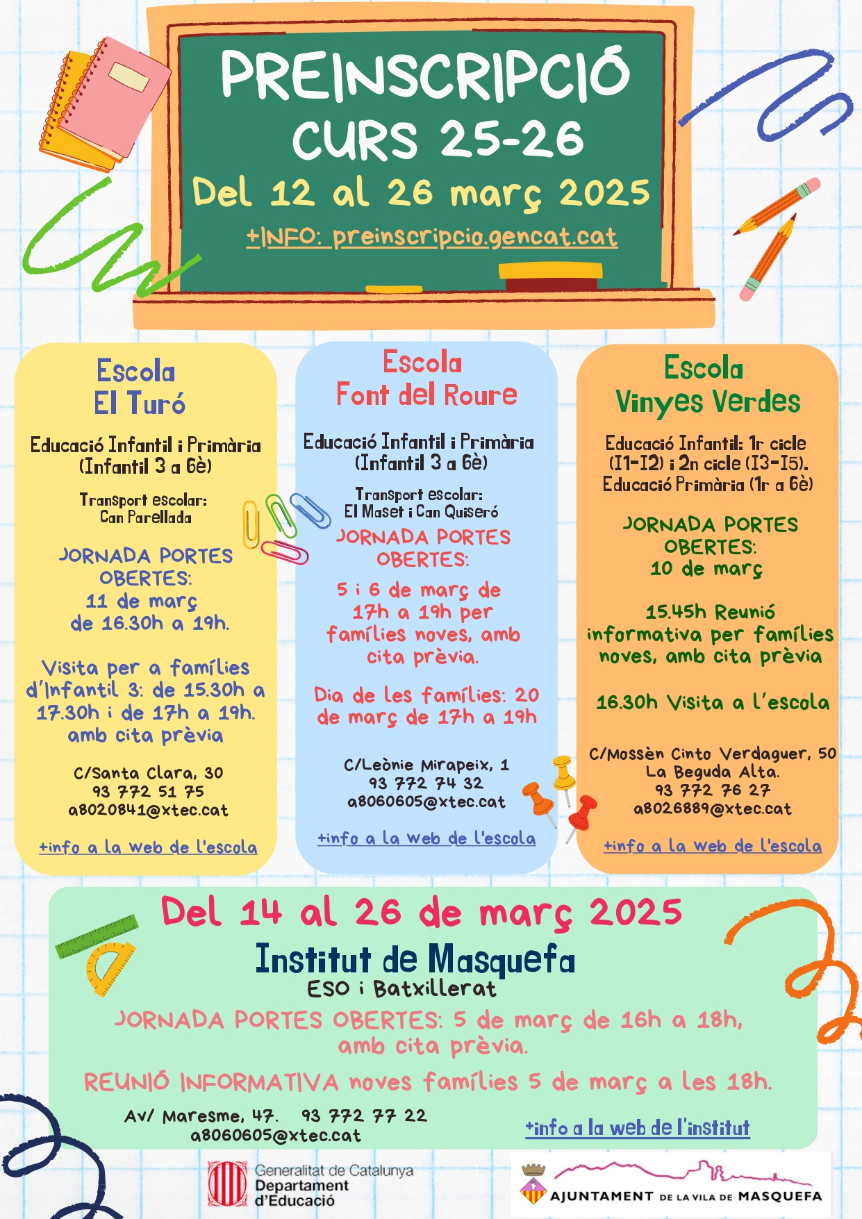 Escola Font del Roure. Jornada de portes obertes per famílies noves al centre els dies 5 i 6 de març, de 17 a 19 h. Dia de les famílies el 20 de març a les 17 h: visita de l’escola i activitats per a tota la comunitat educativa.