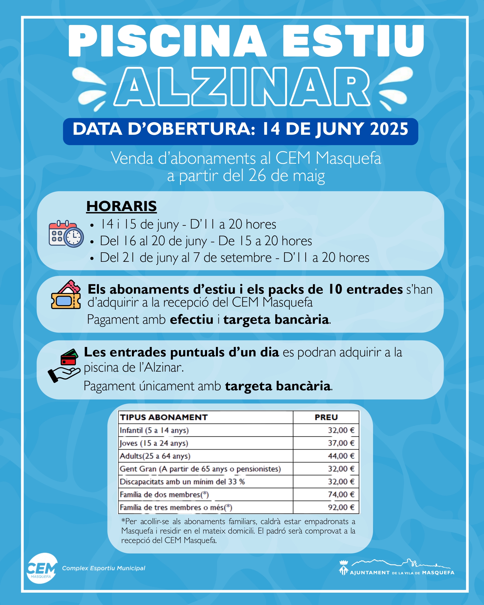 Venda d’ abonaments al CEM Masquefa a partir del 26 de maig