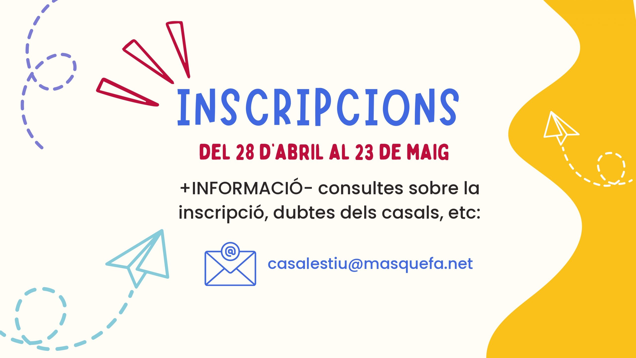 Per qualsevol dubte o aclariment us podeu adreçar a casalestiu@masquefa.net