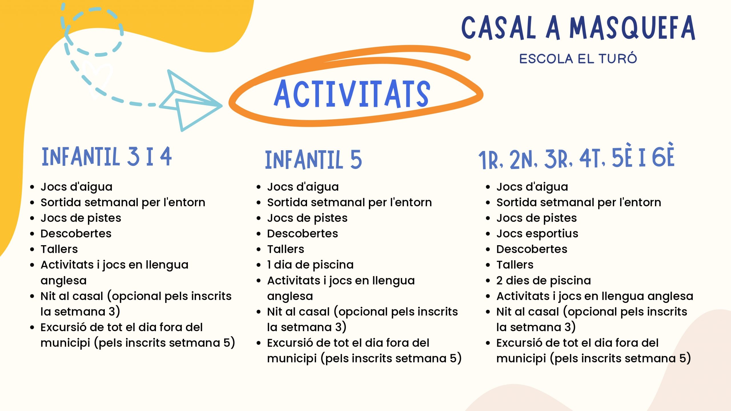 - Tota la informació sobre ELS CASALS D’ESTIU la trobareu aquí