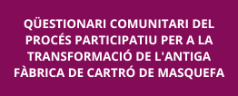 El projecte de transformació urbana de la Fàbrica del Cartró està finançat per la Diputació de Barcelona a través d’una subvenció de 83.000 atorgada a l’Ajuntament i associada als projectes transformadors de l’Agenda Urbana Local de Masquefa.
