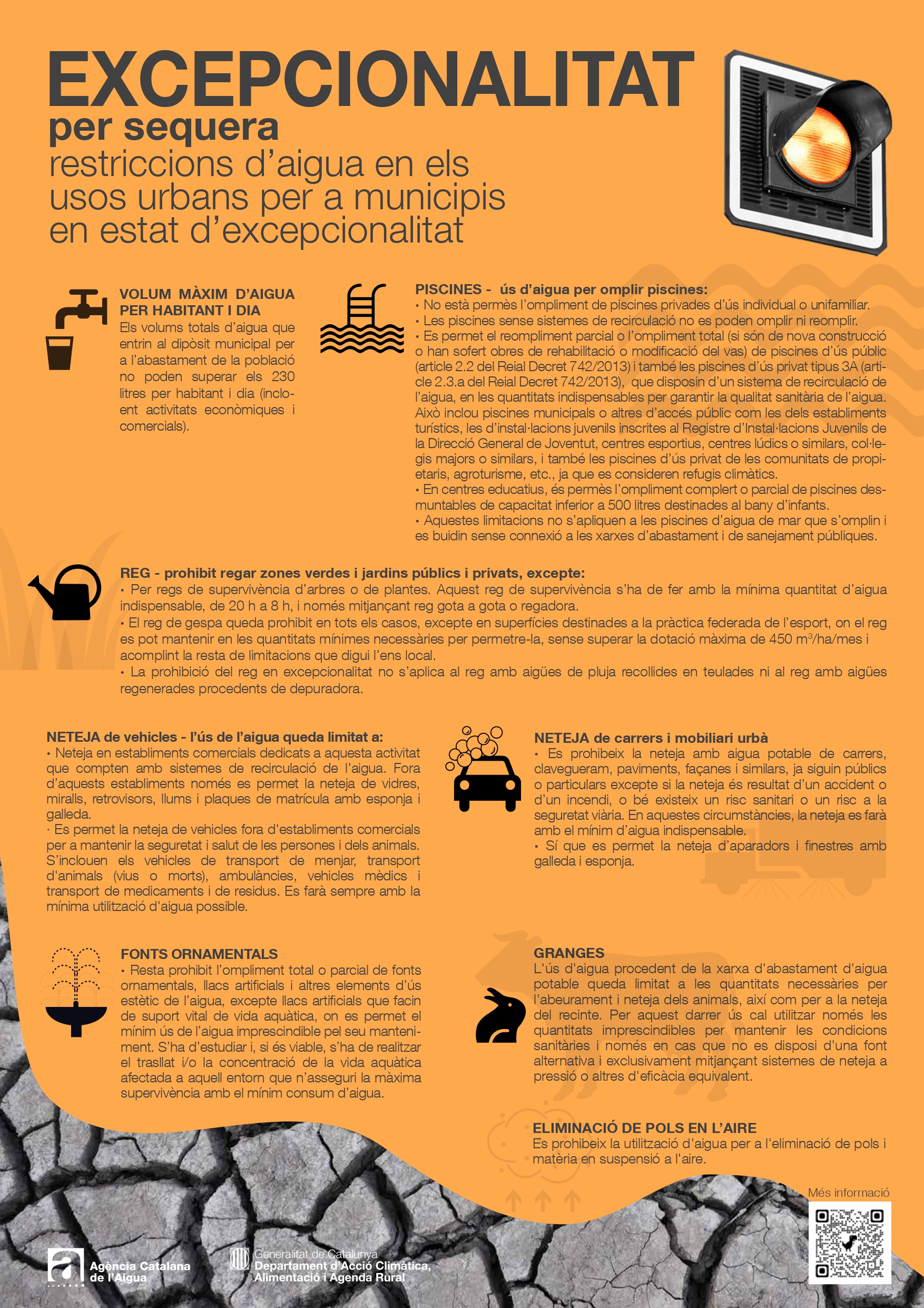 Durant l’estat d’excepcionalitat no es permet omplir ni reomplir en cap cas les piscines privades d’ús individual o unifamiliar, ni tampoc aquelles piscines sense sistemes de recirculació. L’Ajuntament de Masquefa recorda a tota la població que la Llei 9/2023, del 19 de maig, de mesures extraordinàries i urgents per a afrontar la situació de sequera…