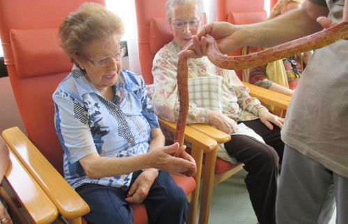 Aquesta original sessió va despertar molt interès entre els usuaris del Centre de Dia, que van estar molt atents a la xerrada que els va oferir l’expert del CRARC. Va ser una xerrada molt pràctica –fins i tot van poder tocar els animals-, didàctica i interactiva, en què els usuaris van explicar les seves vivències i van fer moltes preguntes.