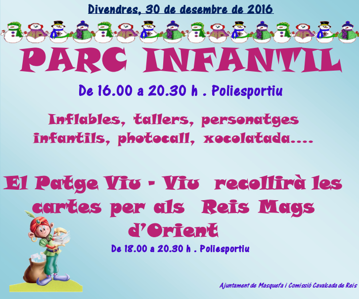 En Viu-Viu, el carter reial de Masquefa, tornarà a visitar el municipi aquest divendres 30 de desembre per recollir les cartes dels nens i nenes per a Ses Majestats els Reis Mags d’Orient. L’activitat es durà a terme al Poliesportiu municipal, de les 18 h. a les 20:30 h.