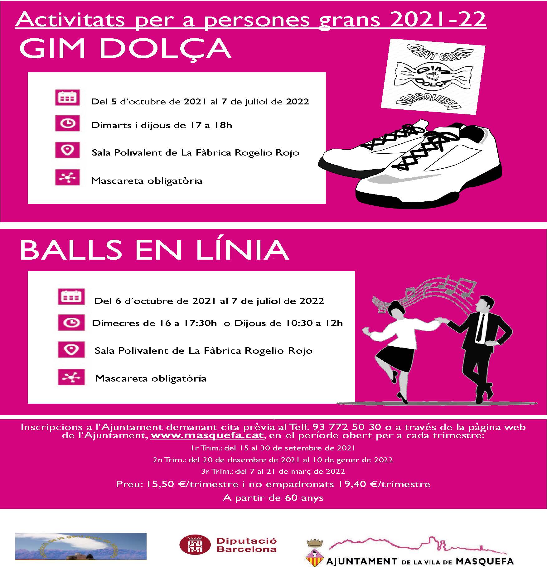 - Balls en línia: del 6 d’octubre al 7 de juliol, els dimecres de 16 a 17.30 h o els dijous de 10.30 a 12 h