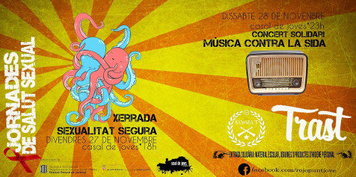 A les 11 de la nit, al Casal de Joves, es farà el concert solidari “Música Contra la SIDA” L’objectiu és conscienciar-nos sobre les malalties de transmissió sexual, ser solidaris amb els afectats i al mateix temps donar un cop de mà a la gent que més ho necessita. Per accedir al concert només cal portar material escolar, joguines o productes d’higiene personal que es faran arribar a les famílies que actualment tenen més dificultats a través de diferents iniciatives solidàries que s’han creat. A continuació us detallem les actuacions que hi haurà: