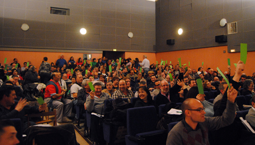 Després de la projecció, l’alcalde, Xavier Boquete, va presentar la vila de Masquefa a les colles assistents i va recordar la feina que la colla ha fet durant molt temps, amb el suport de l’Ajuntament, per a aconseguir ser Ciutat Gegantera 2012. Durant l’assemblea la colla masquefina també va estrenar la samarreta amb el logotip de Ciutat Gegantera creada per a l’ocasió.