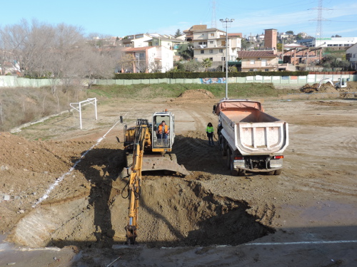 Aquesta setmana han arrancat les obres de la primera fase de la piscina coberta. L’actuació s’ha iniciat amb els moviments de terres, que es preveu que s’allargaran aproximadament quinze dies.